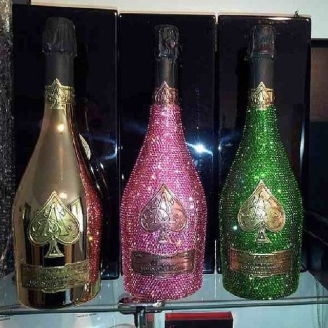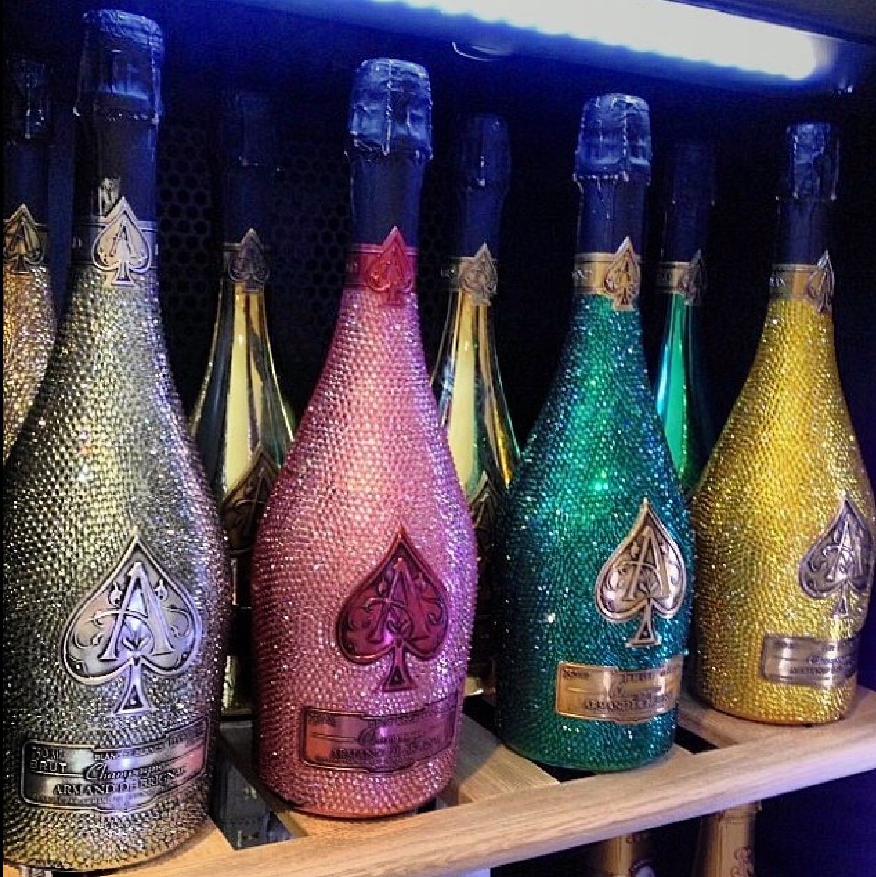 One of the most striking features of Armand de Brignac Champagne is its bottle. Known as the Ace of Spades bottle, it is instantly recognizable due to its metallic finish (available in gold, pink, silver, or green depending on the cuvée) and the hand-applied French pewter label shaped like the ace of spades.